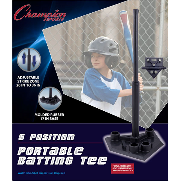 Practicing hand-eye coordination and batting style is easy with the Champion Sports 5 Position Batting Tee. This batter’s tee allows for players to practice swinging at balls outside, inside, and down the middle of the strike zone with five interchangeable positions. The telescoping tee adjusts from 20″ to 36″ for players of various sizes and practicing hitting balls at different heights and angles.