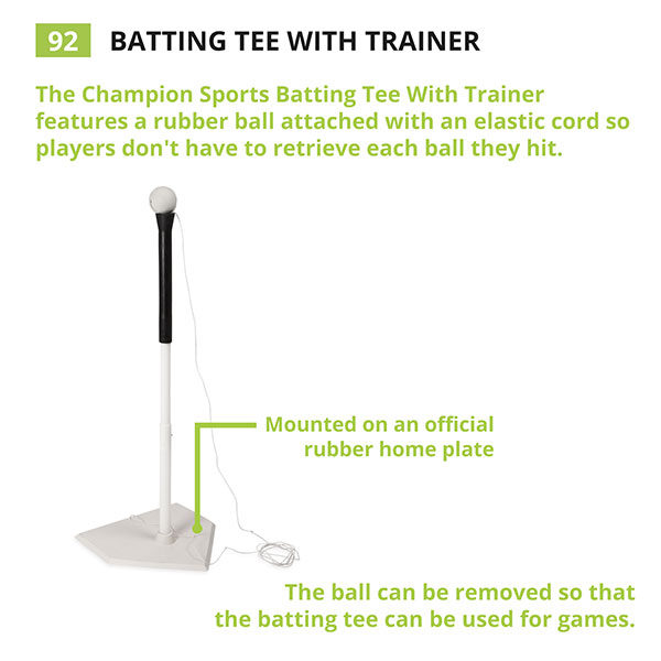 Designed to help batter’s improve their swing, the Champion Sports Batting Tee With Trainer features a rubber ball attached with an elastic cord so players don’t have to retrieve each ball they hit as they practice. The telescopic sleeve adjusts from 21″ to 35″ for players of various sizes or practicing hitting balls at different heights or angles. The ball can be removed so that the batting tee can be used for games.