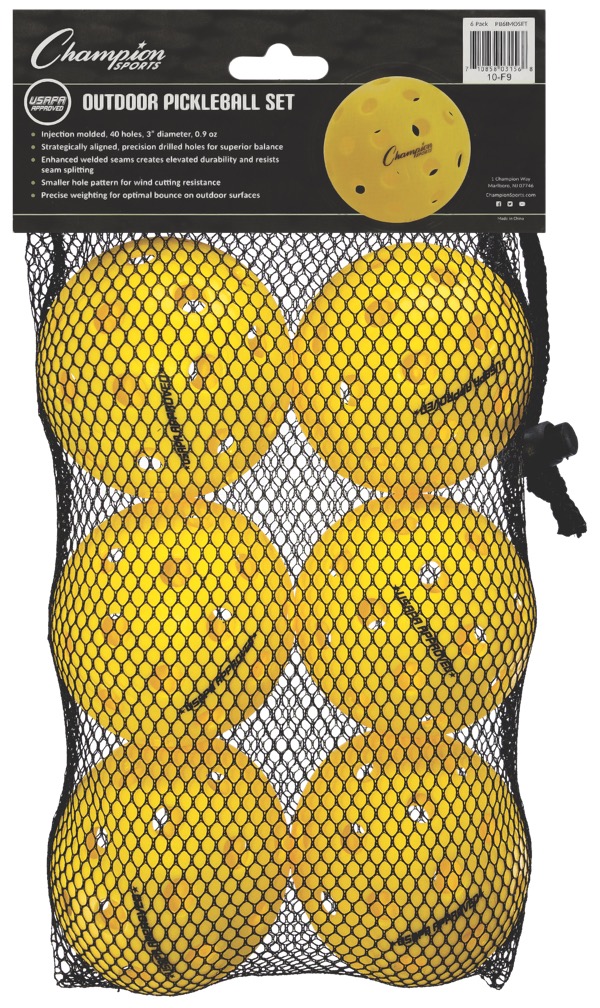 The Champion Sports Injection Molded Outdoor Pickleball meets USAPA requirements for outdoor tournament pickleball play. This pickleball offers consistent performance in all outdoor conditions. The ball is produced using an injection molded process and has holes that are all the same size rather than varying size holes. If you are looking for a ball that flies true and bounces consistently throughout its life, look no further!