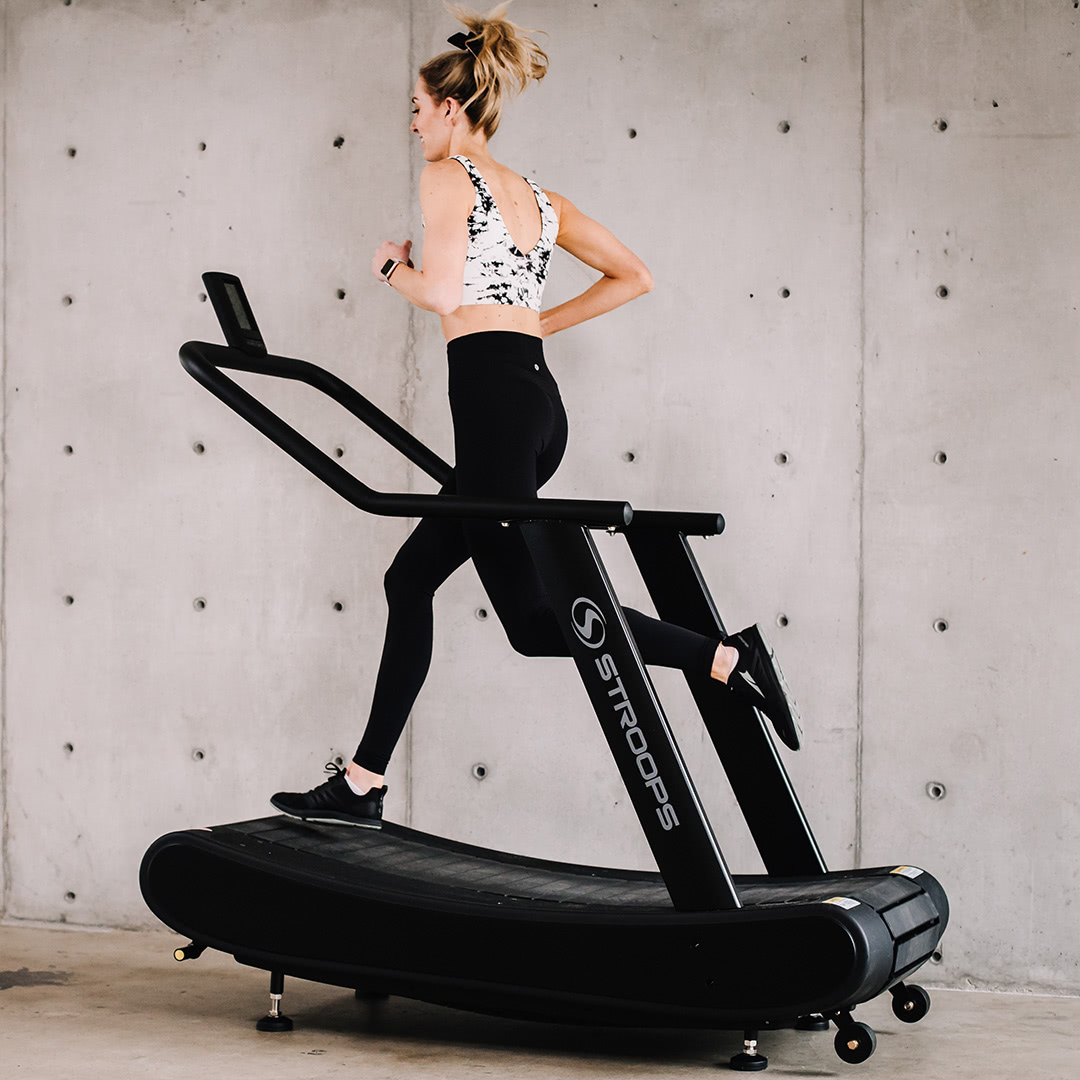 The Stroops Opticurve brings the indoor running experience to a whole new level. This motorless treadmill allows you to run at your own pace, change speed, and stop at a moment?s notice. Don?t stress about an outlet for this piece as this motorless option opens up your possibility to bring the Opticurve wherever you would like without the need for an outlet. Tread?s built with heavy-duty, impact-absorbing slats, will relieve the stress in your joints allowing for a more comfortable run. Built with commercial-grade materials, the Opticurve is built to endure anywhere from high-intensity sprint workouts all the way to leisure walks. The monitor features to-the-second variability to track your speed along with Polar HR monitor pairing for accurate and reliable heart rate tracking. This heavy-duty build doesn?t mean it?s a heavy-duty move. This treadmill packs all the quality of a commercial-grade piece with the easy ability to smoothly transition to different areas in your gym without needing a full tea