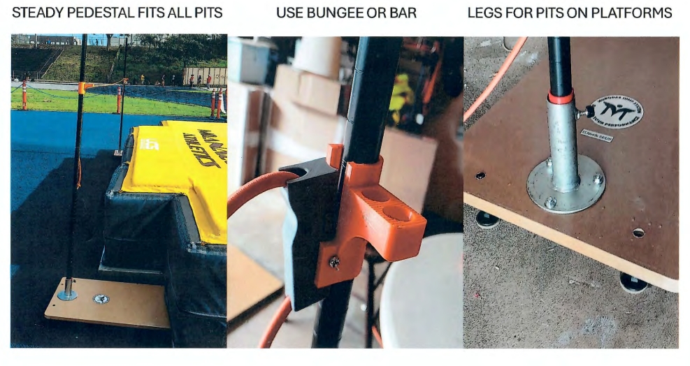 - Eliminates fear of injury for more advanced jumpers doing back drills off a platform and/or jumping at high heights where fear of landing on the bar is real. Removes the “OUCH!” factor.